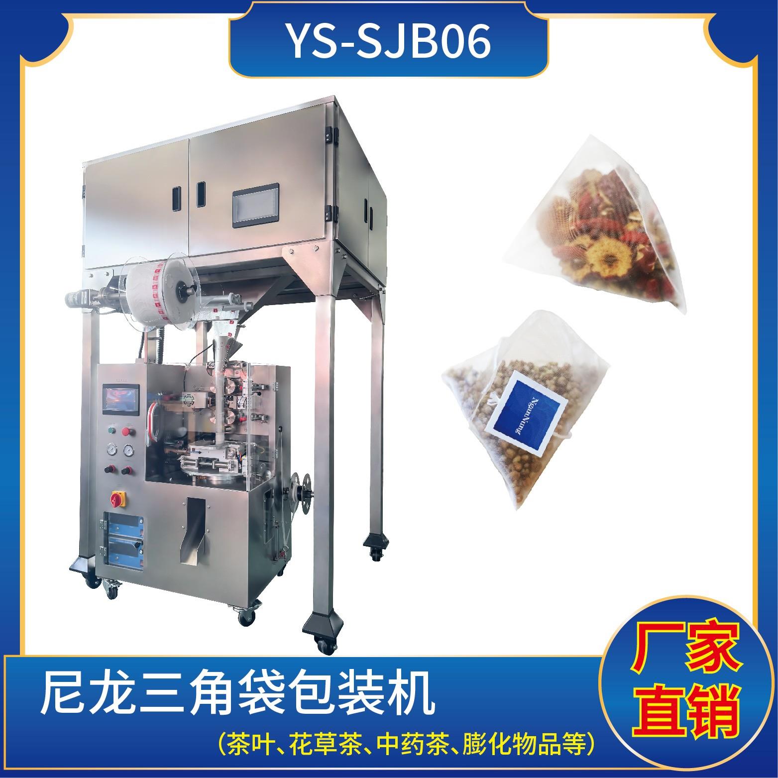 YS-SJB06尼龍三角袋包裝機(jī)(電子秤系列) 特點 1、適用于綠茶、紅茶、花茶、咖啡、中國茶、健康茶、中藥茶、顆粒等。2、可用于平面袋包裝、三角立體包裝等形式包裝袋。3、整機(jī)可自動完成上料、計量、制袋、封口、切斷、計數(shù)、成品輸送等功能。4、選用進(jìn)口超聲波封口,電子稱計量下料方式,封口牢固,下料準(zhǔn)確。5、包裝材料:…